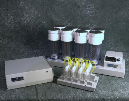 TheAER-800S Research Respirometer utilizes eight specially designed reactionchambers for use with solids such as soil, compost, or plastics inbiodegradability studies.