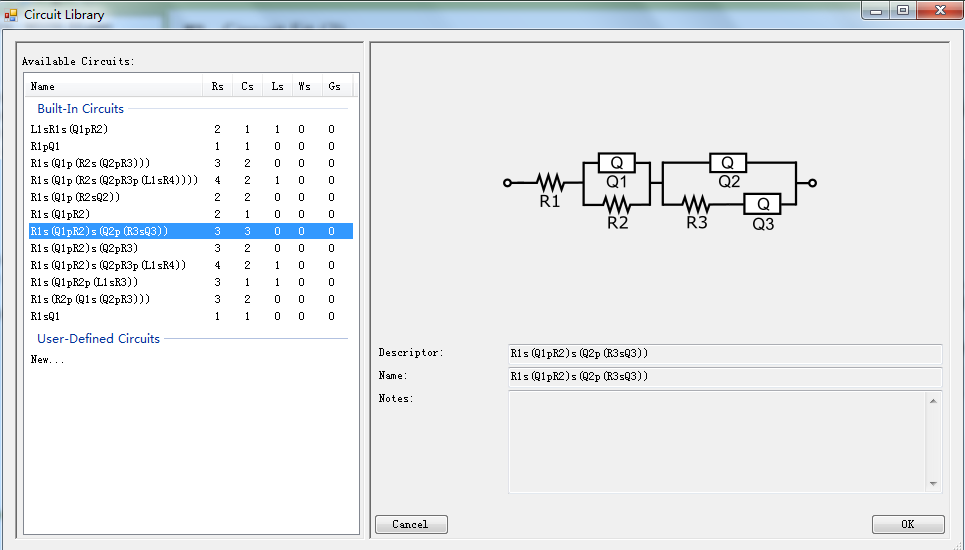 Aftermath軟件,參數(shù)設(shè)置可以模板化,操作簡(jiǎn)便。EIS測(cè)試時(shí)多窗口同時(shí)顯示Bode Plots和Nyquist Plots。測(cè)試完畢后,直接在A(yíng)ftermath軟件內(nèi)進(jìn)行后續(xù)的擬合分析,無(wú)需另外的軟件擬合分析。即便是對(duì)于不懂電路的操作人員而言,擬合分析也非常簡(jiǎn)便。Aftermath軟件提供了多種電路模擬圖數(shù)據(jù)庫(kù)供用戶(hù)擬合選擇,無(wú)需用戶(hù)自己構(gòu)建模擬電路,用戶(hù)還可以自由往數(shù)據(jù)庫(kù)內(nèi)新增電路圖。這大大簡(jiǎn)化了EIS的擬合分析。